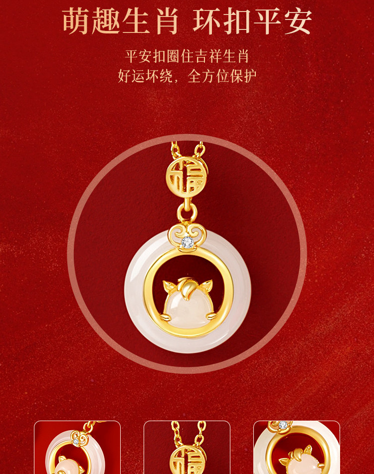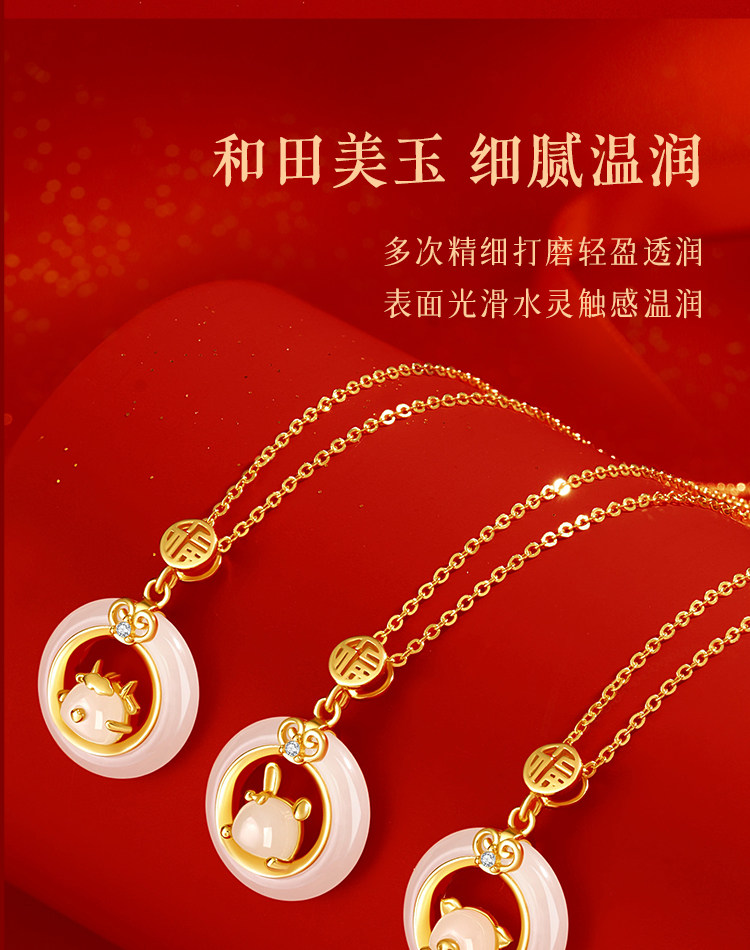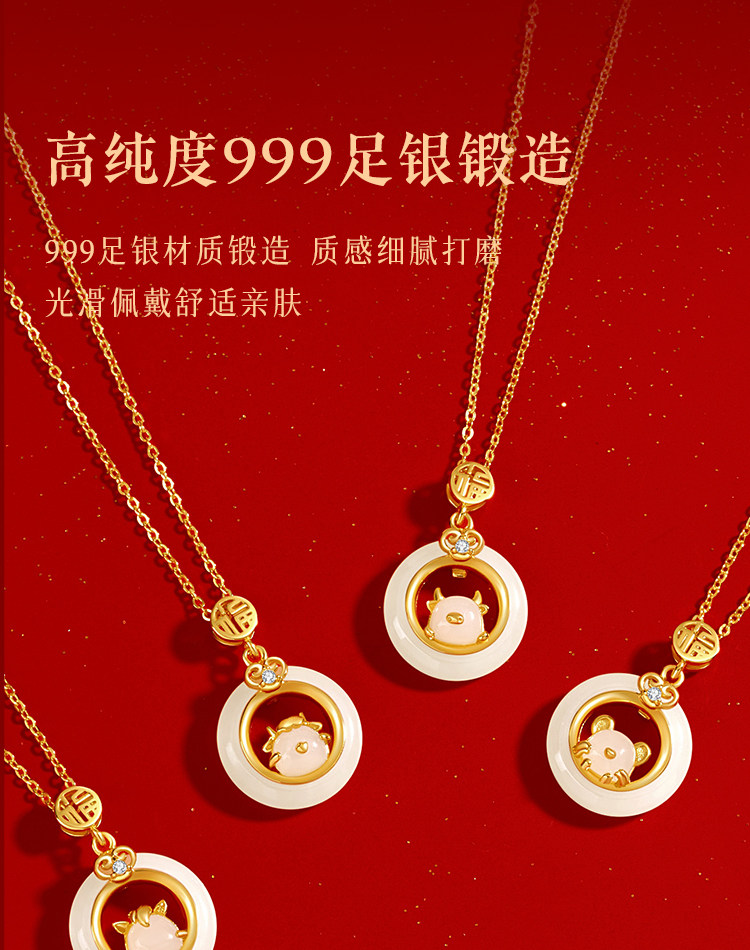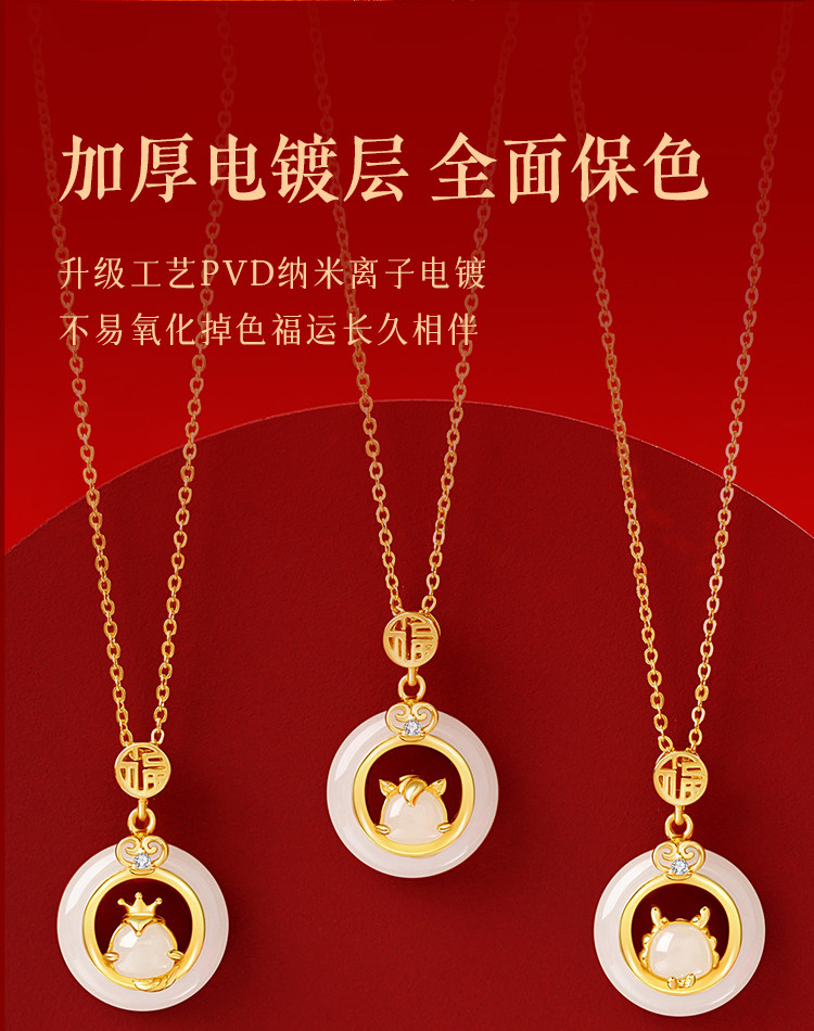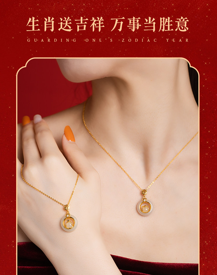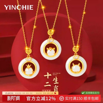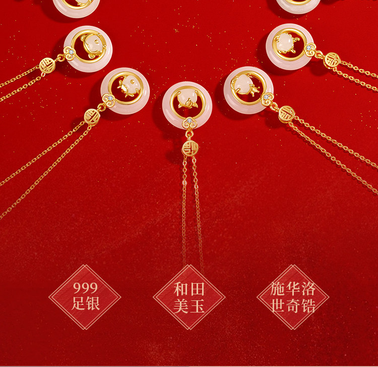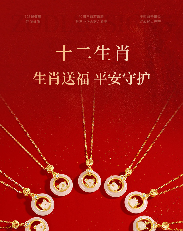 999纯银十二生肖和田玉平安扣项链女天然玉吊坠生日礼物送女友