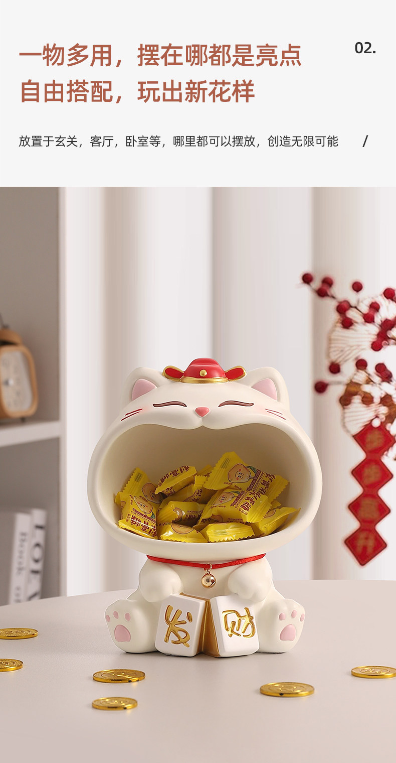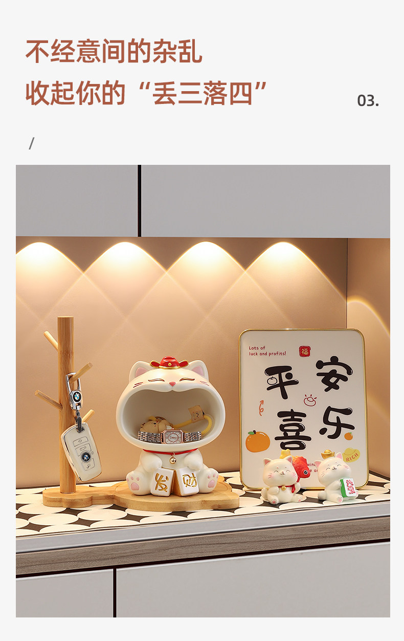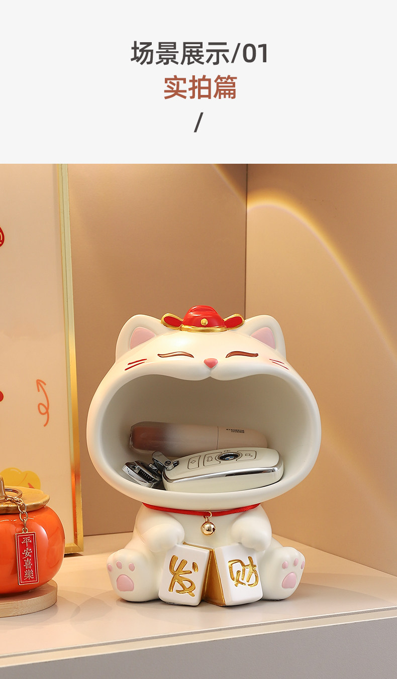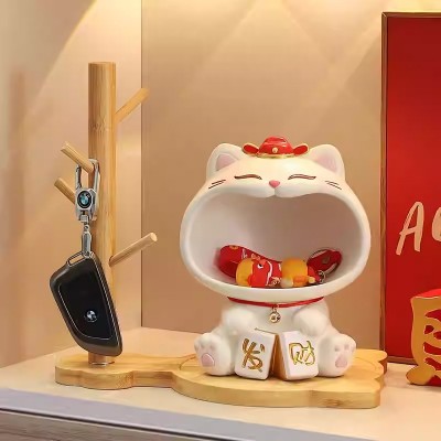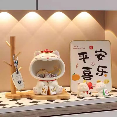 入户玄关摆件钥匙收纳可爱招财猫2025新款家居客厅装饰品乔迁礼物