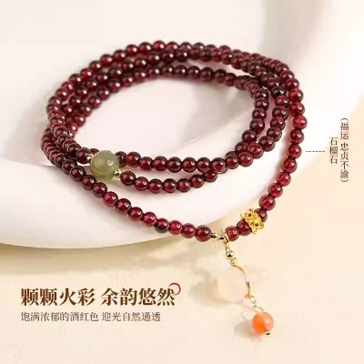 天然红石榴石手链女款多圈叠戴手串串珠轻奢小众精致巨好看的手饰