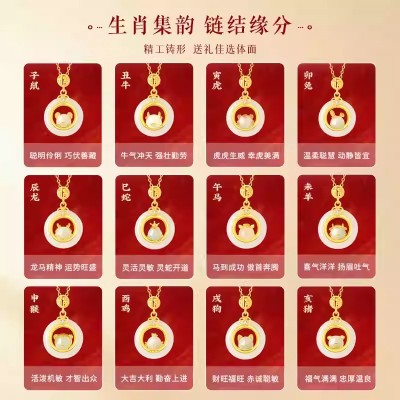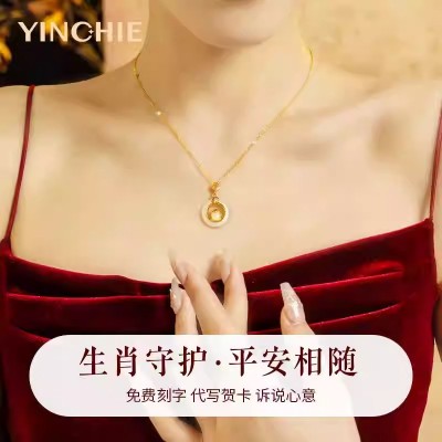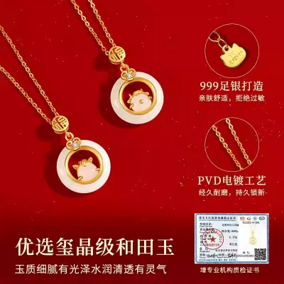 999纯银十二生肖和田玉平安扣项链女天然玉吊坠生日礼物送女友