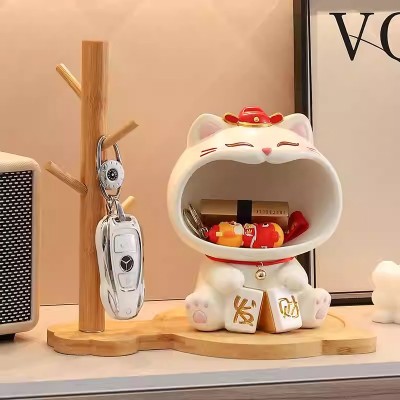 入户玄关摆件钥匙收纳可爱招财猫2025新款家居客厅装饰品乔迁礼物