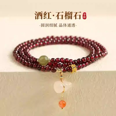 天然红石榴石手链女款多圈叠戴手串串珠轻奢小众精致巨好看的手饰